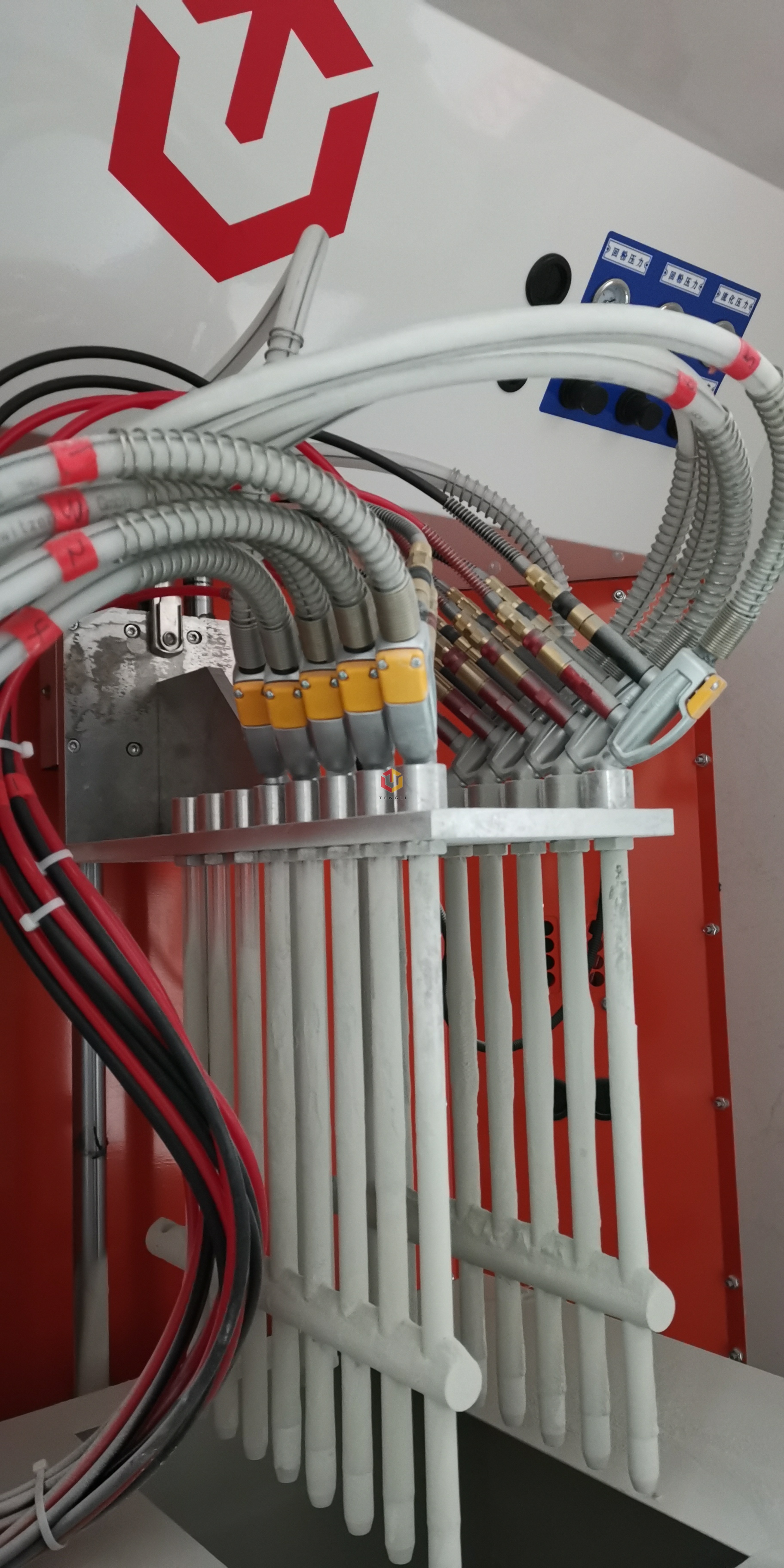 2)噴粉室內雜質。主要是灰塵、衣物纖維、設備磨粒和噴粉系統積垢。解決方法是每天開工前使用壓縮空氣吹掃噴粉系統,用濕布和吸塵器徹底清潔噴粉設備和噴粉室。